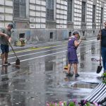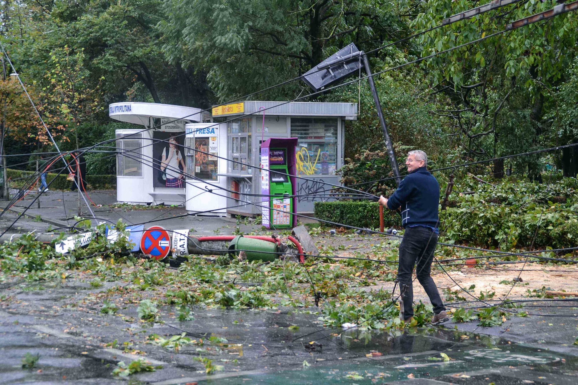 În noaptea zilei de 17 septembrie, R.A.T.T. a intervenit cu utilaje şi echipe pentru deblocarea liniilor de tramvai de la Gara de Nord, strada Preyer, bulevardul Dâmboviţa, pe întregul traseu al liniei 9, strada Ştefan cel Mare, Catedrala Mitropolitană şi la depoul de tramvaie, unde din cauza acoperişurilor de la societăţile private din apropiere, 30% din liniile de contact au fost avariate.