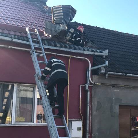 Pompierii militari au acționat pentru localizarea rapidă a incendiului care se manifesta la acoperișul locuinței și care prezenta pericol să cuprindă și casele vecine.