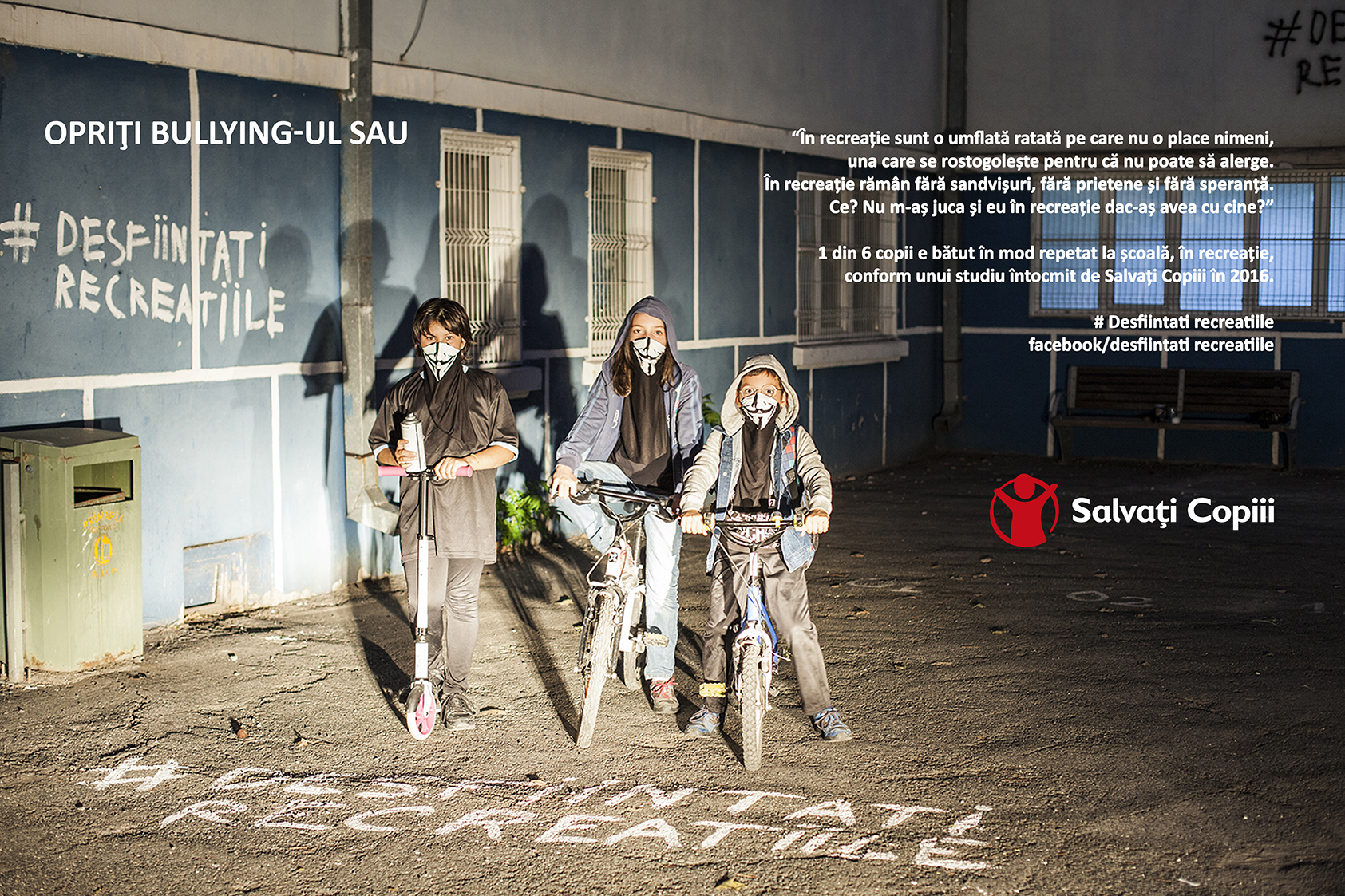 Organizația Salvați Copiii a lansat marți campania “Opriți bullying-ul sau Desființați recreațiile”. Aceasta se va desfășura în perioada noiembrie – decembrie 2017.