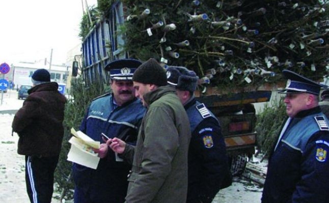 Peste 100 de pomi de Crăciun, confiscați de polițiștii timişeni