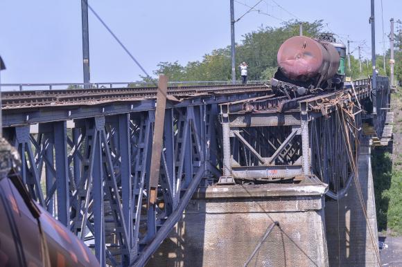 Mai multe vagoane ale unui unui tren de marfă aparţinând Grup Feroviar Român încărcat cu produse petroliere au căzut duminică de pe un viaduct care s-a rupt pe o porţiune, în localitatea Cârcea din judeţul Dolj.