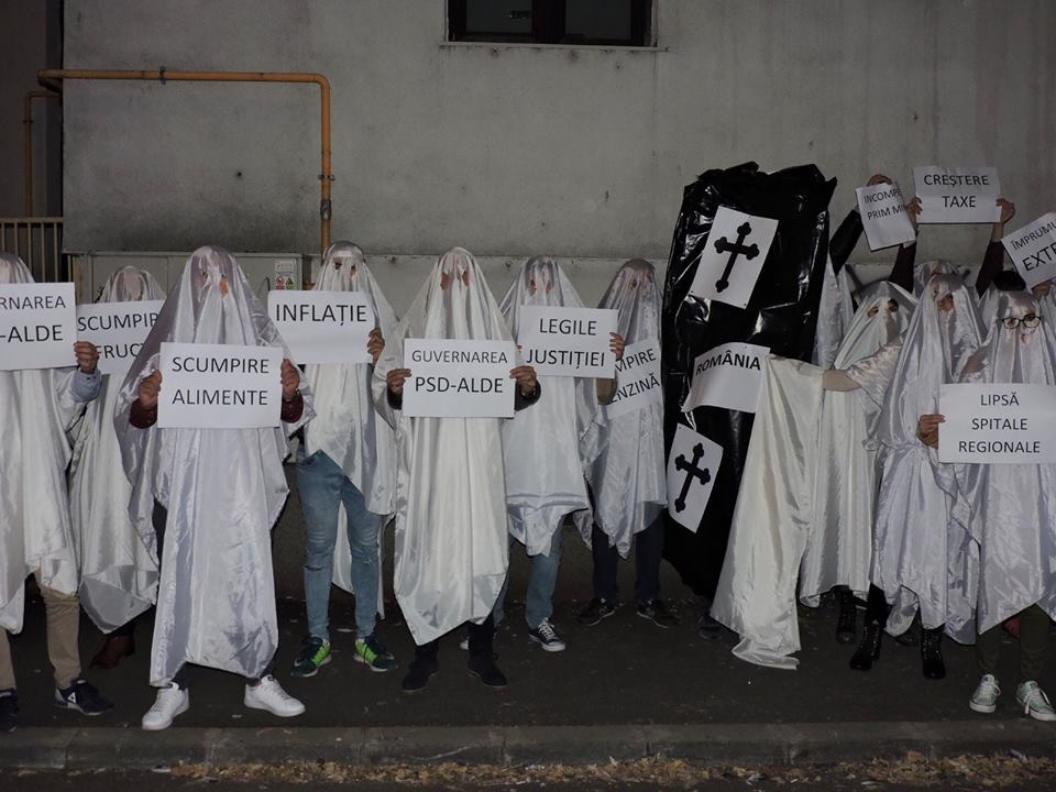 „După ce au bântuit țara în lung și-n lat, aproape doi ani de zile și au îngropat România, de Halloween, fantomele s-au întors acasă, la Daddy! Se spune că spiritele lumii de dincolo cer, o dată pe an, o noapte numai a lor. Din păcate, guvernarea PSD-ALDE face ca viețile românilor să fie „bântuite” în fiecare zi. Creșterea ROBOR, inflația, scumpirea alimentelor, carburanților, energiei și a multor altor produse și servicii, lipsa spitalelor regionale, subjugarea justiției și incompetența crasă a primului-ministru și a guvernanților, sunt doar câteva dintre lucrurile care, zi de zi, afectează traiul românilor”, au scris pe pagina lor de Facebook reprezentanţii TNL Timiş.