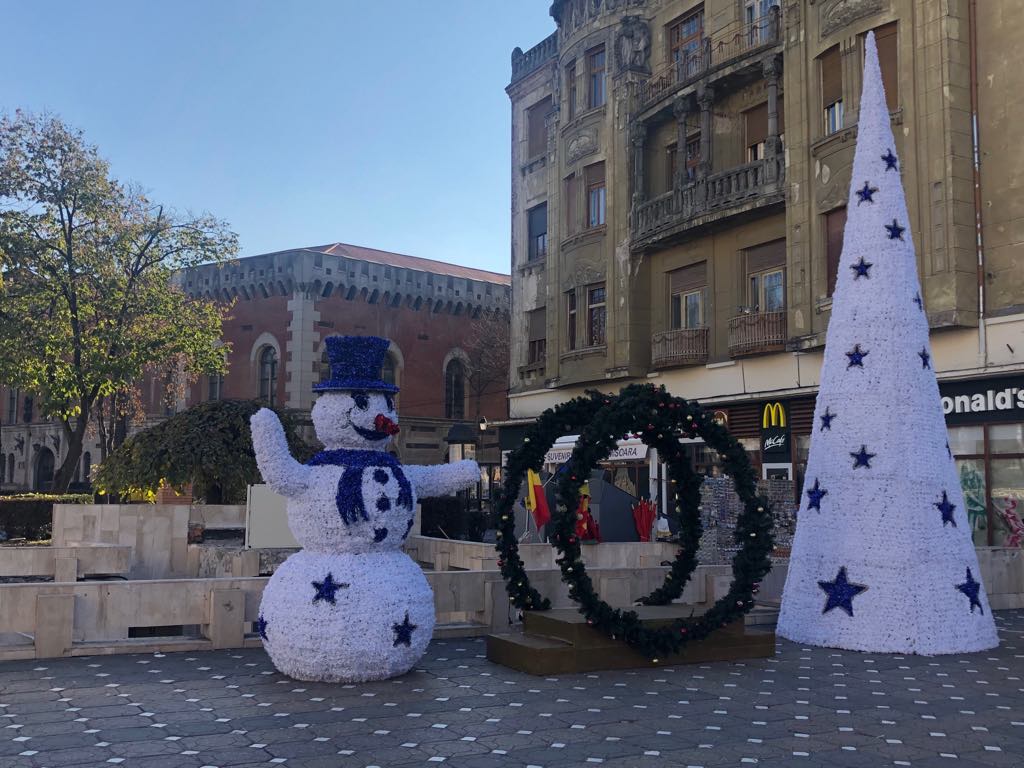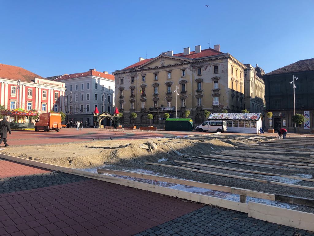 Aproximativ 100 de căsuțe sunt amplasate în Piaţa Victoriei şi în parcarea Modex, iar în Piața Libertății muncitorii instalează un patinoar de 600 de mp, este amplasat un carusel, atelierul lui Moș Crăciun, trenulețul cu care copiii se vor putea plimba gratuit în fiecare sâmbătă și duminică, între orele 10.30-12.30.
