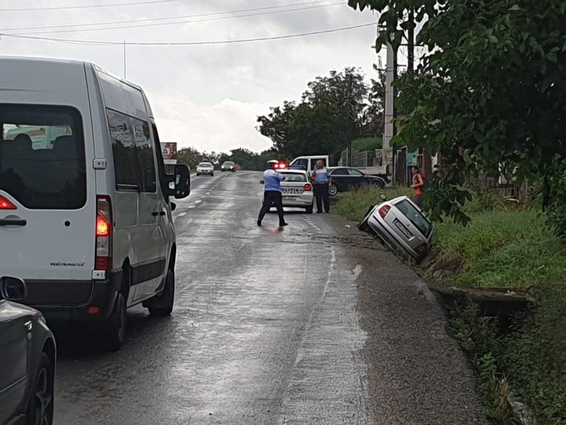 Accident rutier la Mintia, pe DN7. Din primele informații, un autoturism înmatriculat în județul Timiș a depășit spațiul carosabil și a ajuns în șanțul de pe marginea drumului.