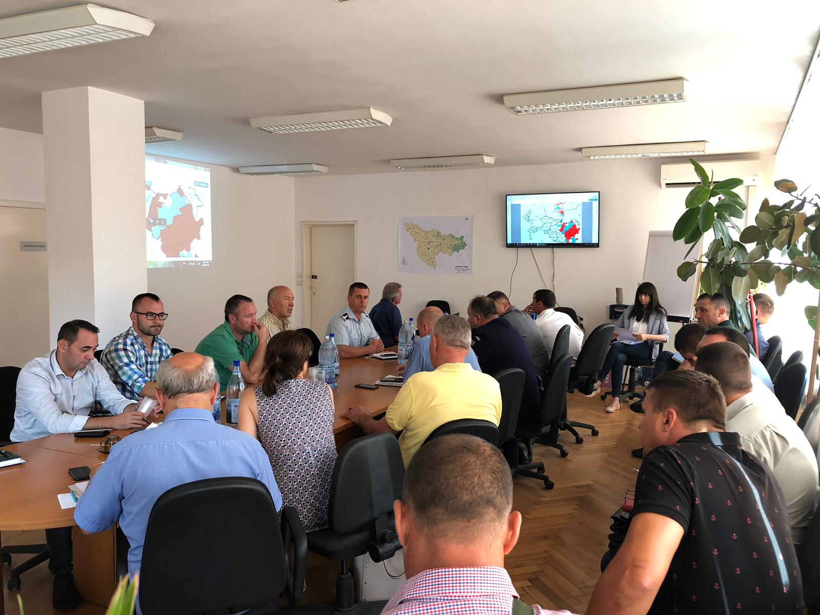 La ședință au participat reprezentanți ai Direcției Silvice, Asociației Județene a Vânătorilor și Pescarilor Sportivi Timiș, ai fondurilor de vânătoare private din Timiș, Direcției Sanitare Veterinare și pentru Siguranța Alimentelor Timiș, Inspectoratului de Poliție al Județului Timiș, Inspectoratului pentru Situații de Urgență și Inspectoratului Teritorial al Poliției de Frontieră.