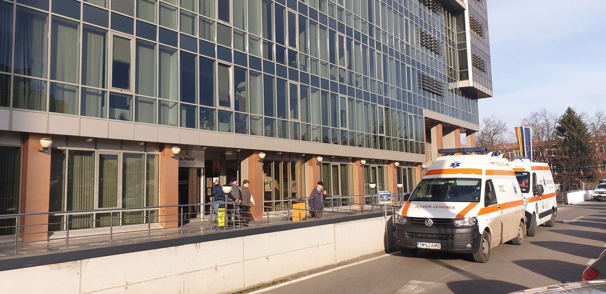 Contribuabilii care au avut treabă joi dimineaţă la sediul ANAF din Piaţa 700 au fost surprinşi să vadă două ambulanţe parcate în faţa sediului instituţiei. Cu toţii se întrebau cine a sunat la 112 şi ce s-a întâmplat. Apelul la numărul unic de urgenţă a fost efectuat pentru o angajată a Finanţelor, căreia i s-a făcut rău în timpul programului. Două ambulanţe au fost trimise la faţa locului pentru a-i acorda primul ajutor femeii.