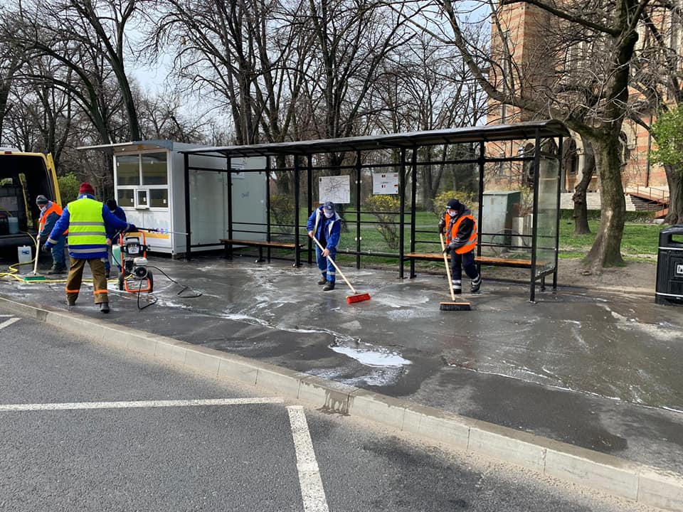 De vineri, angajați ai Societății de Transport Public Timișoara au demarat acțiunea de igienizare și dezinfectare a celor peste 500 de stații în care opresc mijloacele de transport în comun. Igienizarea și dezinfectarea se fac cu detergent și dezinfectant în toate stațiile, pe peroanele aferente și pe trotuarele din vecinătatea stațiilor.