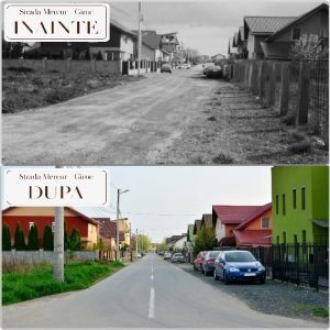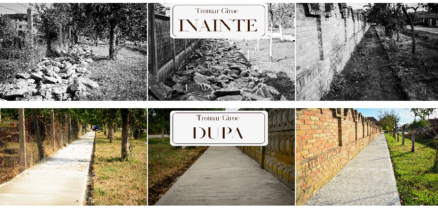 În 2013 am depus primul proiect cu finanțare europeană pe Programul PNDR Măsura 322 prin care, am asfaltat 6,225 km de drum până la Pădurea Giroc, realizând astfel și pista de biciclete inclusiv locurile de parcare de pe strada principală a localității Giroc, finalizat cu succes.