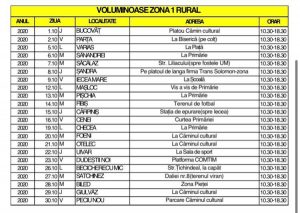 Cetățenii pot depune prin aport voluntar deșeurile voluminoase în containerele special puse la dispoziție în punctele de colectare și între orele menționate în tabelul alăturat.