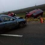 Pompierii au fost chemați să intervină la un accident produs pe drumul județean 692. În accident a fost implicat un microbuz, în care se aflau trei persoane, care în urma impactului s-a răsturnat în afara părții carosabile și un autoturism, în care se aflau cinci persoane.