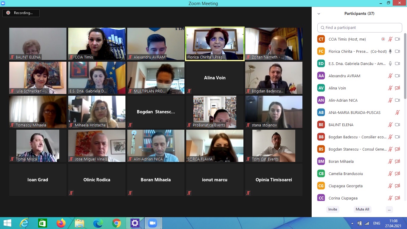 Sub sloganul „Șansa ta la un parteneriat internațional”, în cursul zilei de ieri, 27 aprilie, Camera de Comerț, Industrie și Agricultură Timiș și Ambasada României în Regatul Spaniei au organizat primul eveniment economic online România – Spania, destinat dezvoltării și promovării schimburilor comerciale bilaterale cât și identificării de noi oportunități de afaceri și investiții pe cele două piețe.