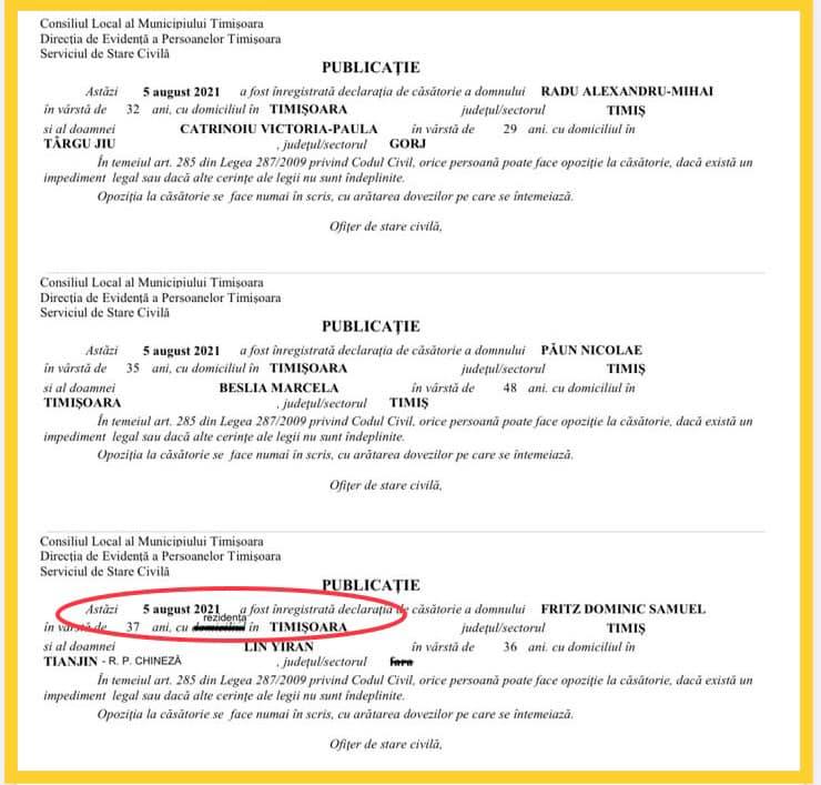 Presupun că pe cei de la Evidența Populației, subordonați d-lui Fritz, s-a pus presiune să accepte declarația de căsătorie fără a li se prezenta actul cu domiciliul mirelui, pe care îl cere, fără echivoc, legea, pt ca el să nu fie “desecretizat”, fiind, cum am tot spus, garantând 100%, în Germania!-, ci să scrie în acea rubrică, PE FALS, cum a făcut dl Fritz la alegeri, adresa sa de locuire temporară în Timișoara.