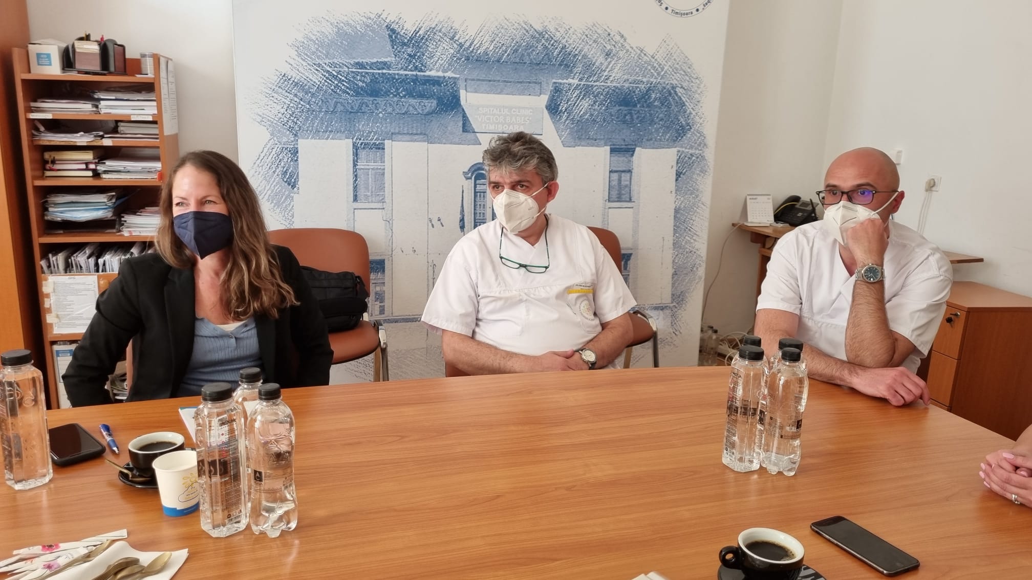 O delegație condusă de dr. Heather Papowitz, manager de criză în cadrul Organizației Mondiale a Sănătății, s-a întâlnit în această dimineață cu conducerea Spitalului de Boli Infecțioase și Pneumoftiziologie „Dr. Victor Babeș” din Timișoara. Specialistul OMS a vrut să vadă care sunt condițiile de tratament din unitatea sanitară aflată în linia întâi a luptei împotriva SARS-CoV 2, care sunt nevoile medicilor și cum poate ajuta organizația spitalul timișean.