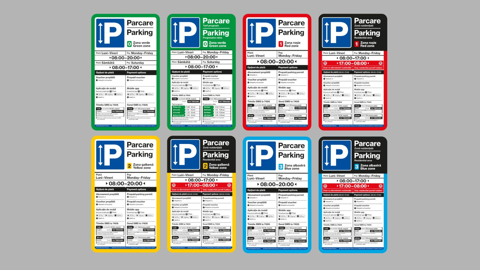 pentru locațiile/parcările cu tarif progresiv din zona Verde, tariful parcării prin voucher sau online (prin aplicație) este de 4 lei pentru primaoră, 5 lei pentrua doua oră, 6 lei pentru cea de-a treia oră, respectiv 7 lei începând cu a patra oră, iar plata prin SMS costă utilizatorul parcării 0,75 Euro+TVA pentru prima oră, 0,95 Euro+TVA pentru a doua oră, 1,10 Euro+TVA pentru a treia oră și 1,30 Euro+TVA începând cu ora a patra;