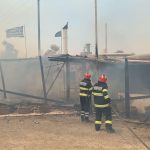 Oamenii focului acționează în condiții extreme, pentru limitarea propagării incendiului spre zonele locuite și menținerea unei linii de protecție între frontul incendiului și zona neafectată.