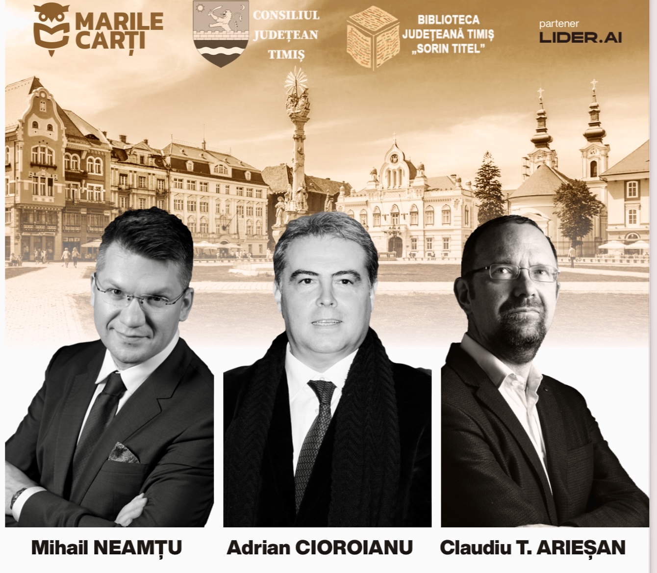 „Conferințele de la Timișoara” sunt finanțate de Consiliul Județean Timiș și organizate de Biblioteca Județeană „Sorin Titel” în parteneriat cu Lider. AI, Clubul Marile Cărți și Eximtur. Aceste evenimente se doresc a fi o pledoarie pentru lectură și un mesaj de susținere a proiectului Timișoara Capitală Europeană a Culturii.
