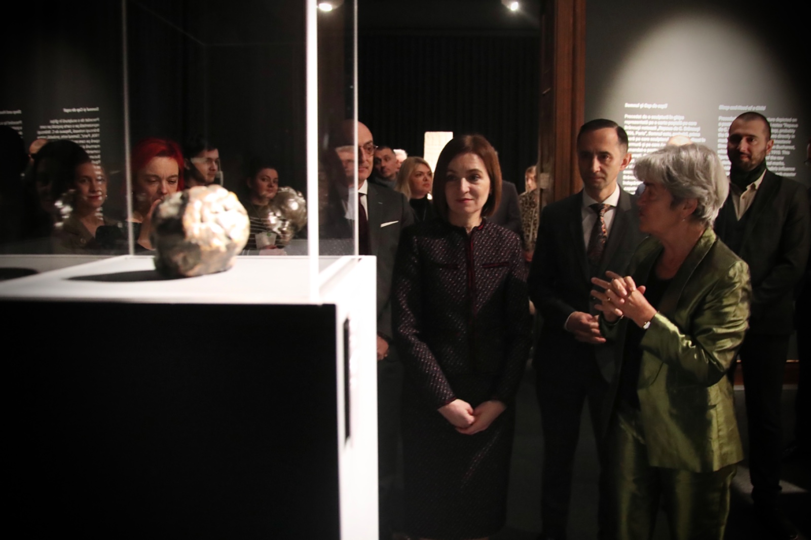 Președinta Republicii Moldova a avut ocazia să admire opere cu o valoare patrimonială universală, lucrări celebre, dar și mai puțin știute, precum Piatra de Hotar. Curatoarea expoziției a subliniat faptul că această operă-manifest realizată în 1945 exprimă tristețea sculptorului pentru pierderea unor provincii istorice precum Basarabia.