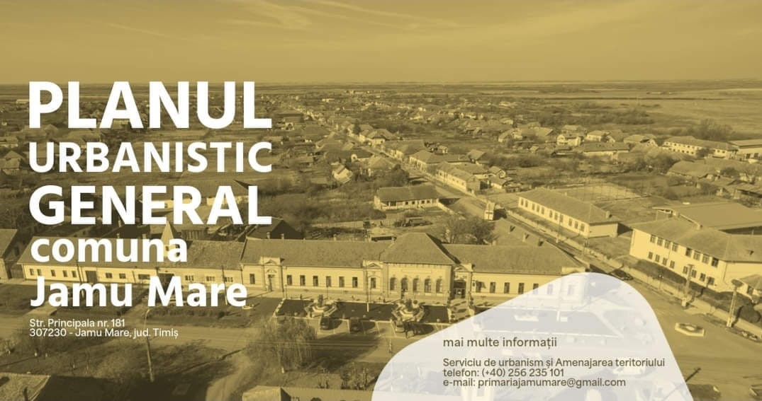 Acest lucru necesită o acţiune de colectare a opiniilor locuitorilor comunei Jamu Mare privind modificările aduse reglementărilor actuale prin intermediul unei consultări. În 19 ianuarie, la ora 14.00 în sala de ședință de la sediul primăriei s-au organizat întâlniri pentru dezbaterea publică privind elaborarea și actualizarea Planului Urbanistic General al Comunei Jamu Mare.