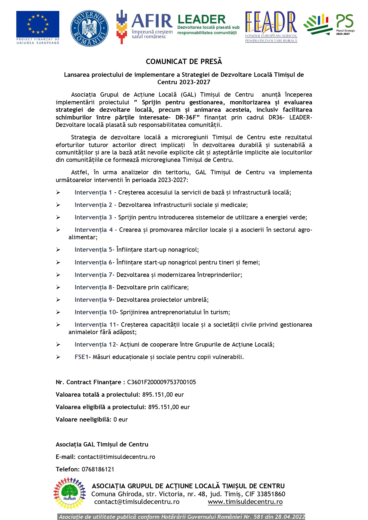 Valoarea totală a proiectului: 895.151,00 eur