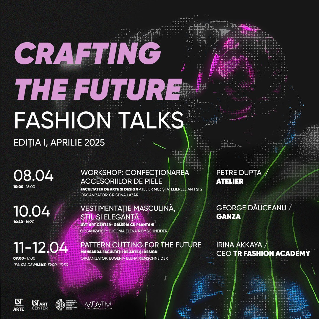 Facultatea de Arte și Design din cadrul Universității de Vest din Timișoara organizează prima ediție a evenimentului „Crafting the future: Fashion Talks”.