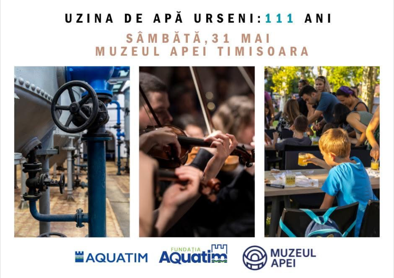 Vă așteptăm așadar sâmbătă, 𝟯𝟭 𝗺𝗮𝗶 (𝗼𝗿𝗲𝗹𝗲 𝟭𝟮-𝟭𝟱), la Muzeul Apei Timișoara, administrat de Aquatim, cu un program pentru toate vârstele, în care apa ne inspiră și ne conectează, prin știință, tehnică, artă, istorie și inovație. Vă invităm să vă bucurați de muzică, să explorați secretele vechii uzine de apă, să transformați un deșeu ce dăunează canalizării într-un obiect frumos și să vă relaxați în parcul uzinei, printre platanii seculari.