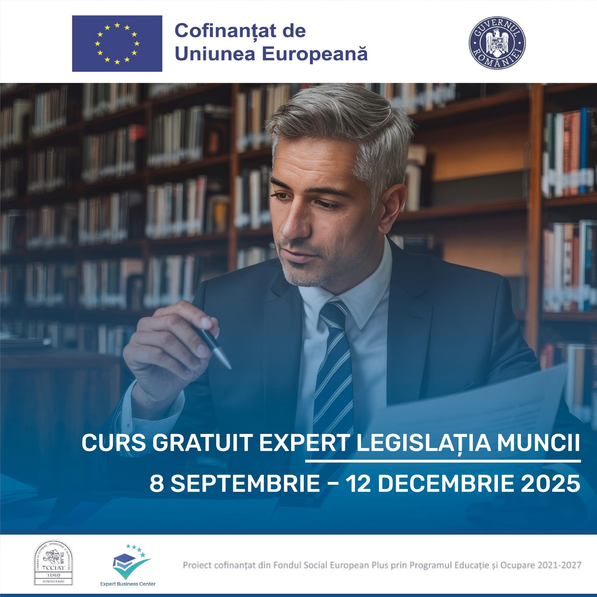CCIA Timiș Camera de Comerț, Industrie și Agricultură Timiș în calitate de beneficiar și Expert Business Center SRL partener, va invită să participați GRATUIT la cursul Expert Legislația Muncii. Acesta este organizat în cadrul proiectului „Evoluția Tehnologiilor Rapide = Evoluția Carierei Angajaților din Regiunea Vest!”, ID 317710.