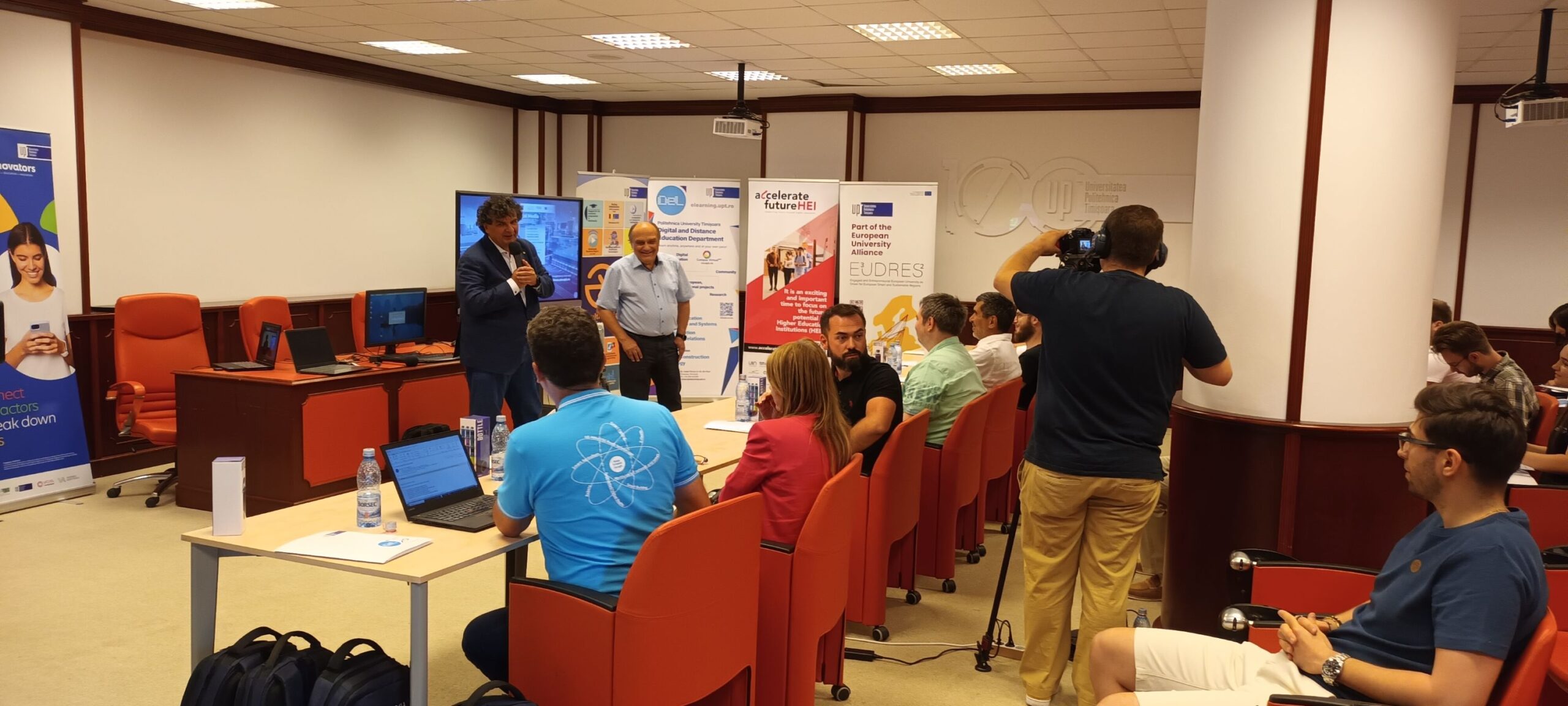 Biblioteca UPT a găzduit vineri, 20 iunie 2025, cea de-a XI-a ediție a Concursului Studențesc Interactive Digital Media Student Contest 2025 (IDMSC 2025), organizat, în format hibrid, de Universitatea Politehnica Timișoara, prin Centrul Multimedia și Departamentul ID/IFR și Educație digitală. Evenimentul a reunit studenți la nivel de licență, master și doctorat de la mai multe universități din țară, dar și din străinătate, de la instituții de învățământ superior partenere în cadrul alianței E³UDRES².