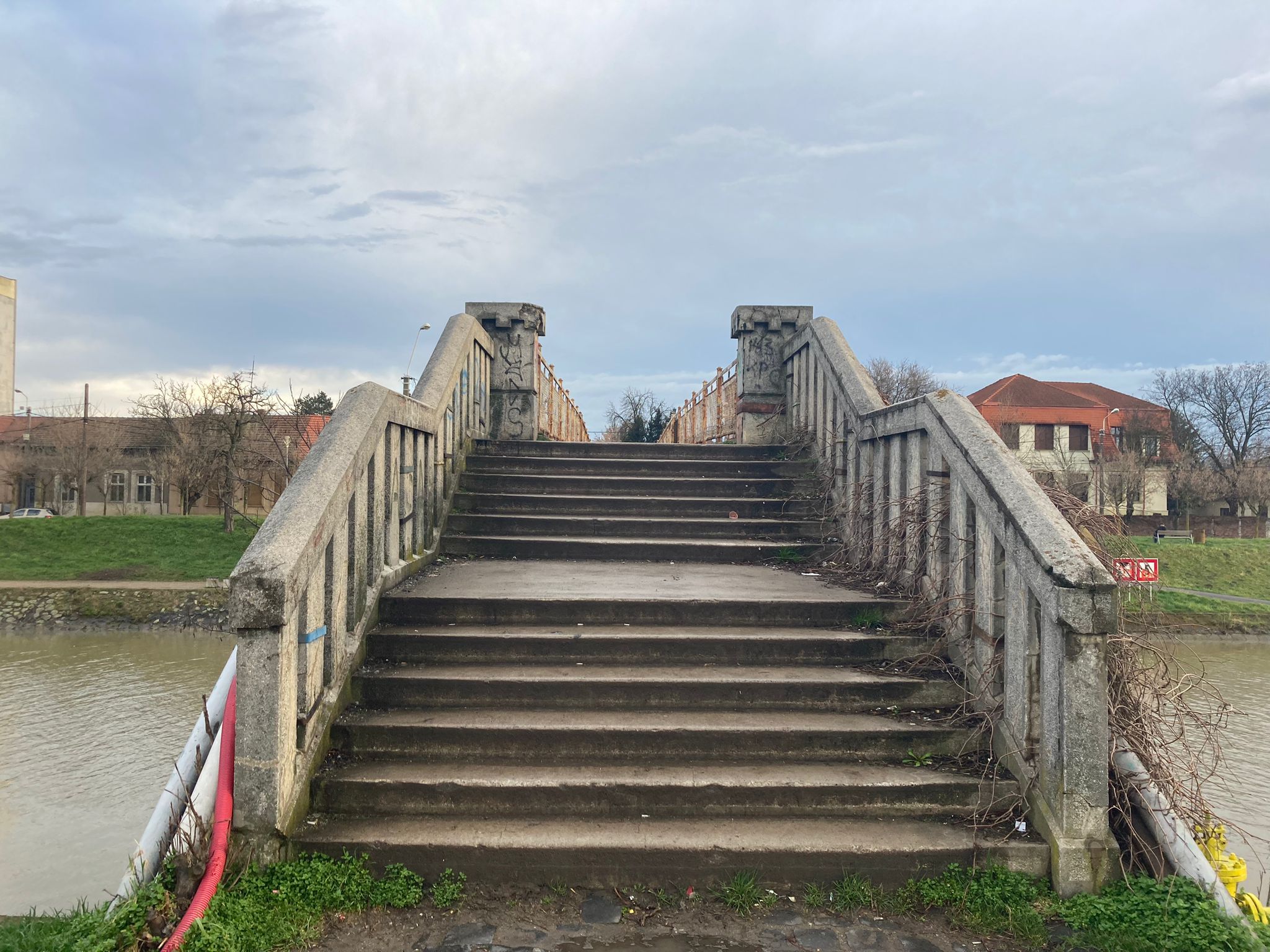 Reamintim, vechea pasarelă, construită în 1949, care prezenta degradări semnificative la structura de rezistență, a fost demolată de către municipalitate. Pe locul pasarelei a fost realizat un pod nou, cu o lățime variabilă între 5,40 m și 8,00 m, trasee pentru pietoni și bicicliști, precum și cu scuaruri în zona centrală. Spre deosebire de vechea structură, care avea scări abrupte, noul pod este prevăzut cu rampe de acces, facilitând deplasarea pietonilor, bicicliștilor și a persoanelor cu mobilitate redusă. De asemenea, pentru siguranță, a fost montat un parapet de protecție din oțel zincat, iar traversarea este pusă în valoare de iluminatul arhitectural. Investiția Primăriei Municipiului Timișoara are o valoare peste 12 milioane de lei (TVA inclus), bani asigurați de la bugetul local.