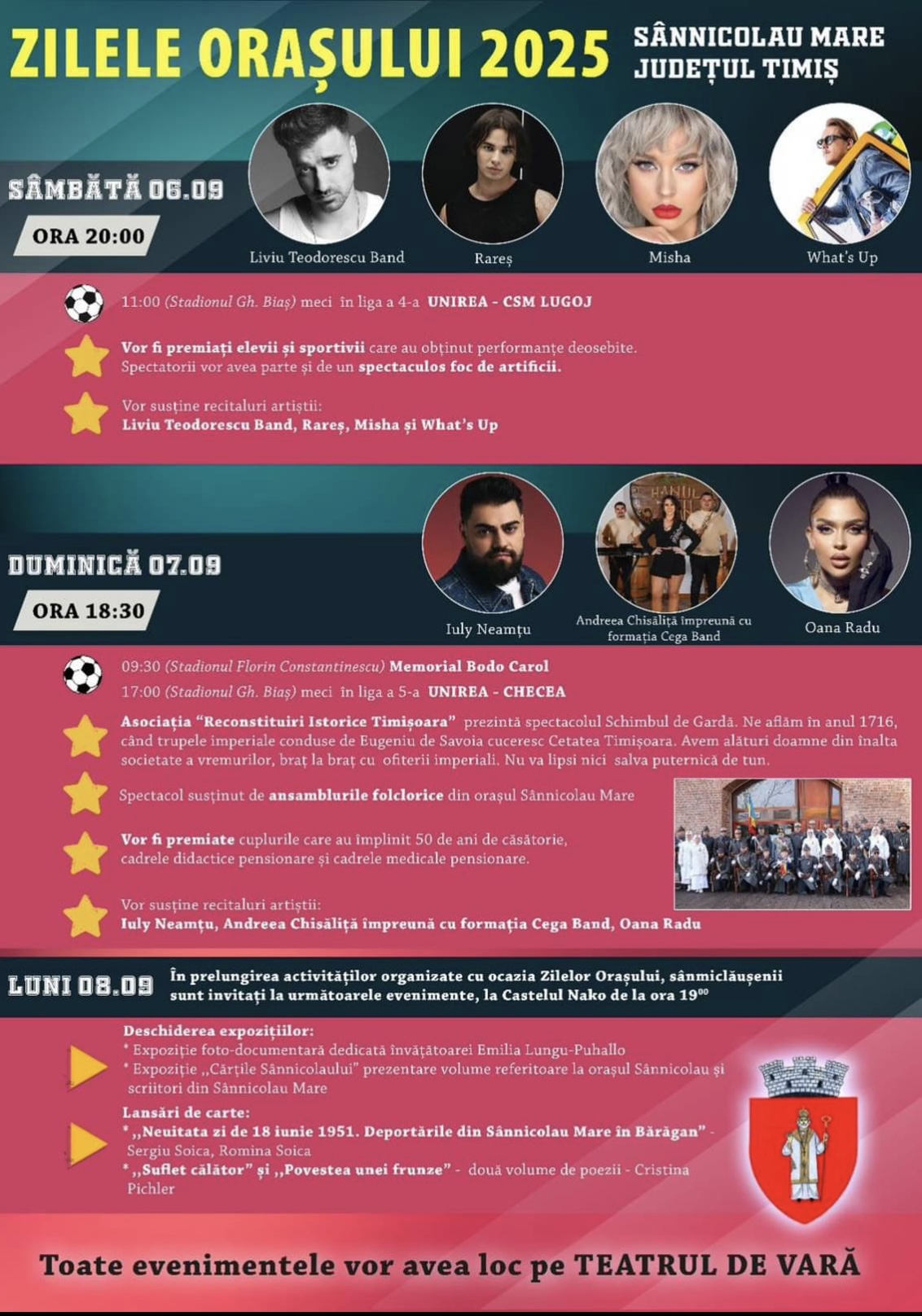 O nouă ediție a celui mai așteptat eveniment din Sânnicolau Mare, Zilele Orașului, se desfășoară între 6-7 septembrie 2025.