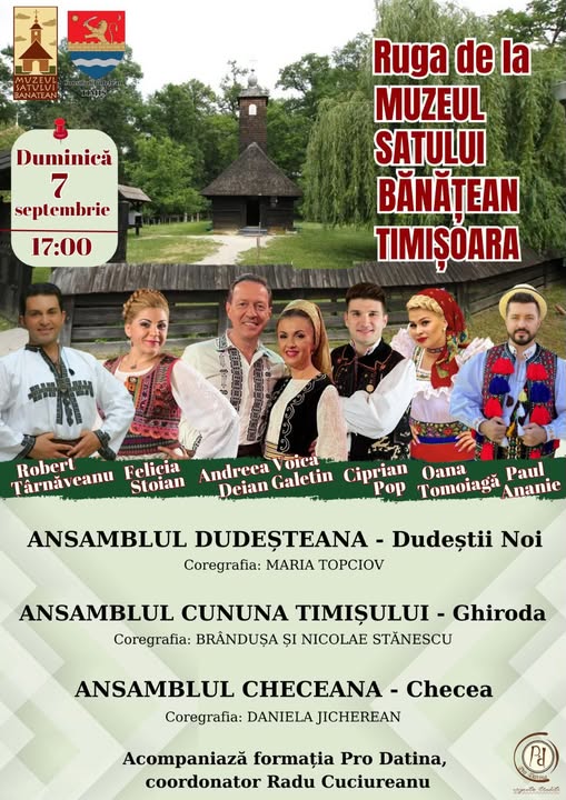 Duminică, 7 septembrie, de la ora 17:00, sunteți invitați la „Ruga de la Muzeul Satului Bănățean”, un eveniment care aduce împreună comunitatea, tradiția și bucuria cântecului popular.
