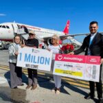 Bucuria a fost împărtășită cu echipajul aeronavei, cu reprezentanții Animawings de pe aeroport și cu echipa de comunicare a Aeroportului Internațional Timișoara Traian Vuia. Norocosul pasager a fost selectat și premiat odată cu sosirea aeronavei. Este vorba despre o timișeană. Femeia a aterizat pe Aeroportul Internațional din Timișioara fără să știe ce o așteaptă. Când a coborât din avion, a văzut buchetul cu flori și pancarta prin care era anunțată că a devenit pasagerul cu numărul un milion din 2025.