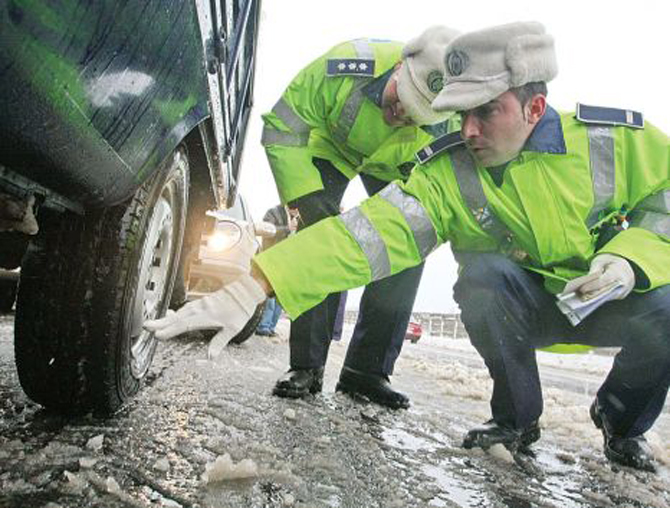 - Echiparea autovehiculului cu anvelope de iarnă inscripționate „M+S” atunci când se circulă pe drumuri cu zăpadă, polei sau gheață.