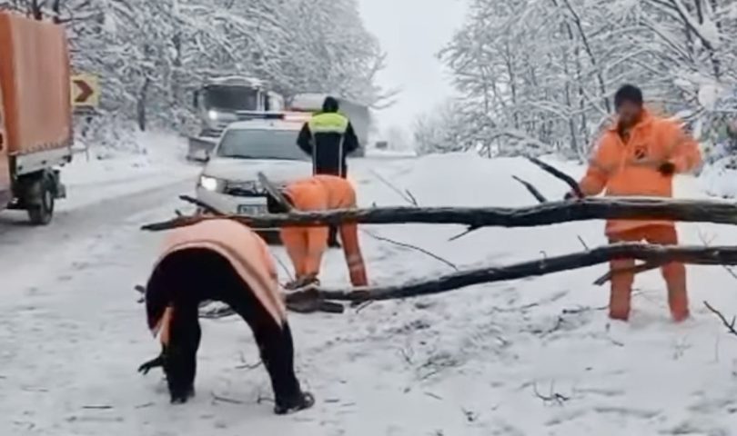 Ninge abundent pe DN 68A Margina-Holdea, se circulă în convoi, dirijat de poliția rutieră și cu antemergător pentru echipajul de deszăpezire. Pe sector se intervine și pentru degajarea carosabilului de crengile căzute pe drum.