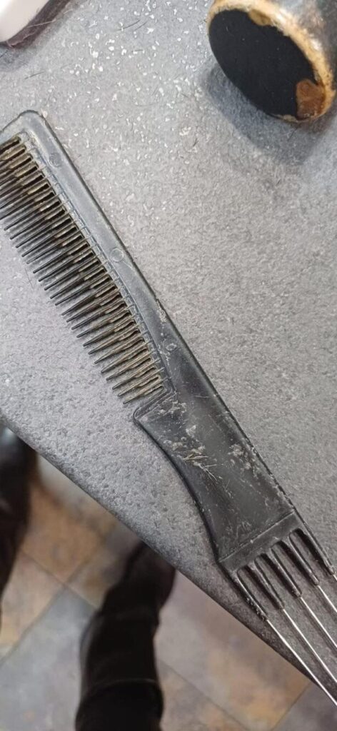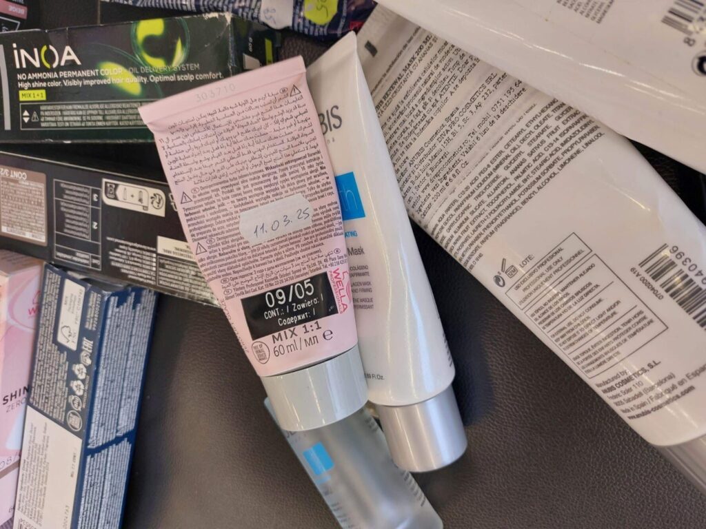 ANPC a găsit produse expirate şi instrumente neigienizate. Doamnele și domnișoarele sunt îngrijite cu produse expirate, vopsea de păr veche, cu termen de valabilitate depășit și lac pentru unghii care nu mai era în termenul de garanție de multă vreme, chiar din 2023, iar ustensilele folosite un adevărat focar de infecție.