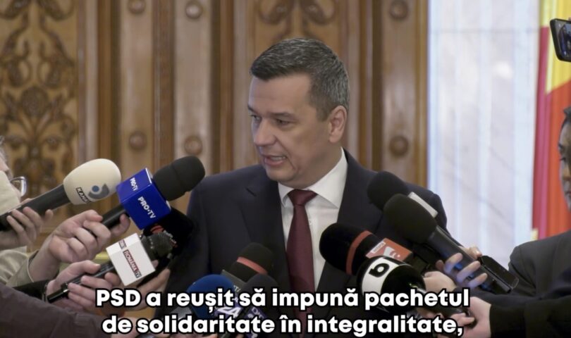 Pachetul de solidaritate a fost impus în integralitate. „Mă declar satisfăcut. Pachetul de solidaritate a fost impus în integralitate, ceea ce este un lucru bun. Rămâne un semn de întrebare legat de faptul că, la fel ca în alte situații când am venit cu o propunere, a fost nevoie de multă tensiune și, până la urmă, s-a ajuns la soluția propusă de PSD”, a afirmat Sorin Grindeanu.