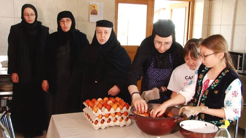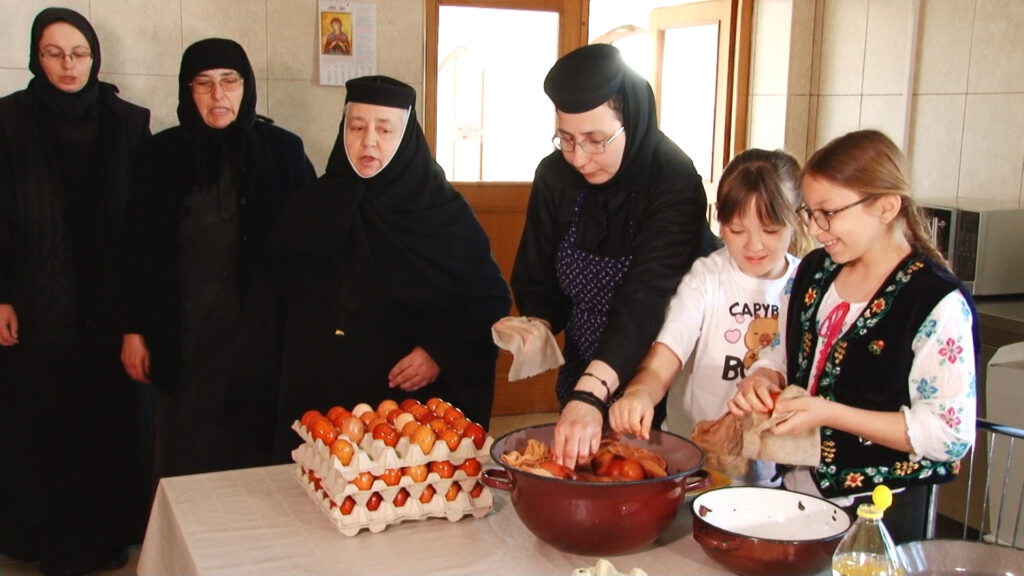 În Sfânta și Marea Zi de Vineri, când în Biserica Ortodoxă se face pomenirea Sfintelor și Mântuitoarelor și înfricoșătoarelor Patimi ale Domnului şi Dumnezeului şi Mântuitorului nostru lisus Hristos, obștea de maici a Mănăstirii Timișeni, departe de forfota orașului și de febra cumpărăturilor, continuă o frumoasă tradiție de vopsire a ouălor, păstrată încă de la întemeierea mănăstirii.