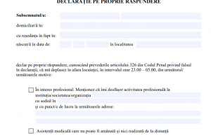A fost emis modelul declarației pe propria răspundere pentru deplasare noaptea și modelul adeverinței de la angajator