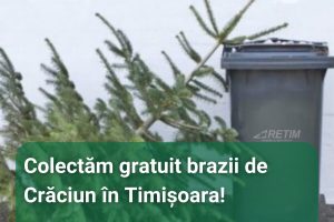 RETIM colectează gratuit brazii de Crăciun din Timișoara! Perioada: 13 – 24 ianuarie 2025 (atenție: calendarul de colectare pentru fiecare zonă din municipiu este disponibil pe site-ul RETIM, secțiunea Știri) Cum se face colectarea? -La platformele de colectare (blocuri) – Lângă pubela neagră (case), conform calendarului Află detalii aici: https://retim.ro/colectarea-gratuita-brazi-naturali-timisoara-ianuarie-2025/?fbclid=IwZXh0bgNhZW0CMTAAAR3TD6IXvUu7HXkw5AYGCRktYzIgtdrGPEjY5ravAWeEYRsaN4-UJoL-9Rs_aem_yMhzwI3rZjpXTnCB34hd4A […]