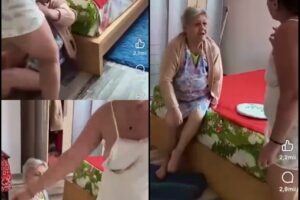 Bătrână bătută de noră, iar soțul agresoarei a filmat