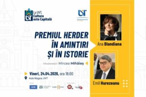 „Premiul Herder în amintiri și în istorie”, eveniment cultural organizat de Universitatea de Vest din Timișoara, cu Ana Blandiana și Emil Hurezeanu